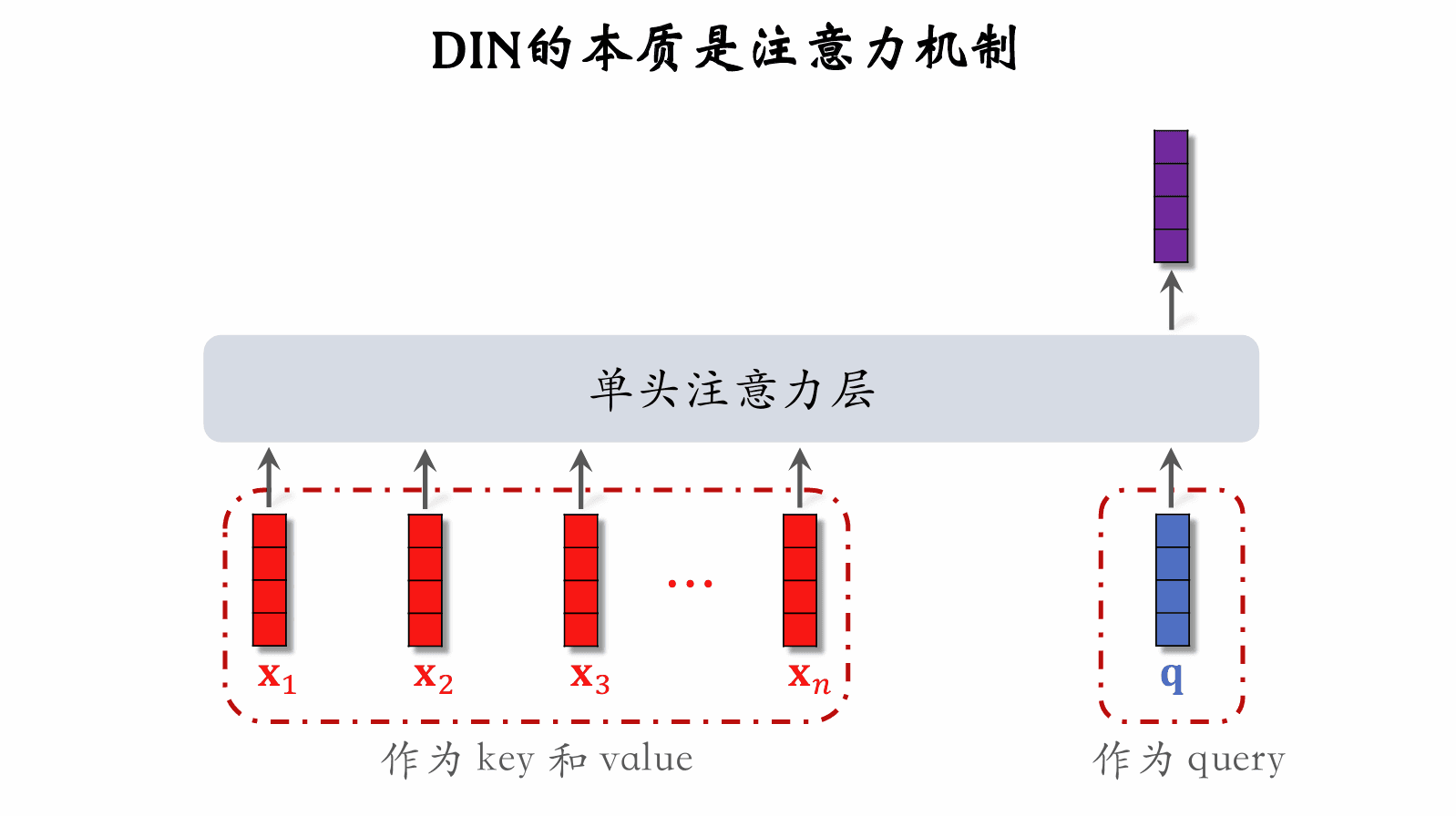 • DIN 用 加权平均 代替 平均,即注意力机制(attention)。